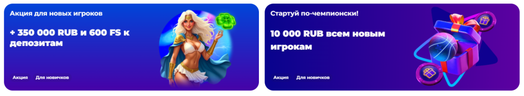 Для новых игроков предусмотрен щедрый приветственный пакет на первые три депозита. Обычно он выглядит следующим образом: на первый депозит начисляется 100% бонус от суммы пополнения и фриспины для популярных слотов; на второй депозит — 75% бонус и еще одна порция фриспинов; на третий депозит — 50% бонус и снова фриспины.